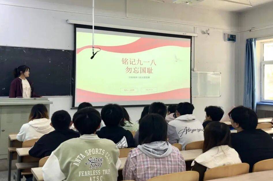 第二临床医学院组织各团支部“铭记九一八,青年说·医者行”主题团课。团课以一段黑白影像拉开序幕——1931年九一八事变的珍贵史料,将在场学生的思绪带回那个山河破碎的年代。“从九一八到全民族抗战,无数中华儿女用生命捍卫尊严,其中不乏医者的身影。”主讲人结合《抗战时期医疗日志》等史料,讲述了东北抗联卫生员冒死救治伤员、地下党医生传递情报的真实故事,让历史不再是课本上的数字,而是鲜活的生命与抉择。团员们围绕“新时代医学生的责任”展开热烈讨论,从“精进医术”到“服务基层”,从“科研报国”到“人文关怀”,青春的声音碰撞出炽热的责任担当。