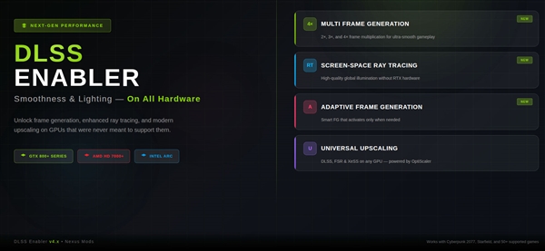 不过已有技术大神通过DLSS Enabler等第三方工具,成功在AMD RX 7000系列显卡上抢先开启了多帧生成以及FSR 4功能。