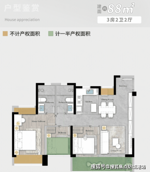 88㎡三房两厅两卫,是刚需入门的首选户型,总价友好,适合年轻小家庭起步居住,既能满足日常居住需求,又不会给家庭带来太大的经济压力,堪称“刚需福音”。