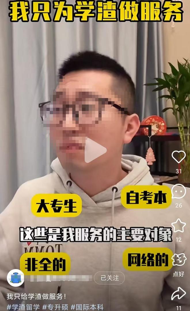 这些宣传话术无疑精准地击中了当下父母们的焦虑点:当孩子高考失利,只能就读民或者大专时,这些标榜“低投入高回报”的留学方案,恰好迎合了家长“曲线救国”的心理诉求。